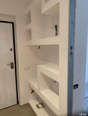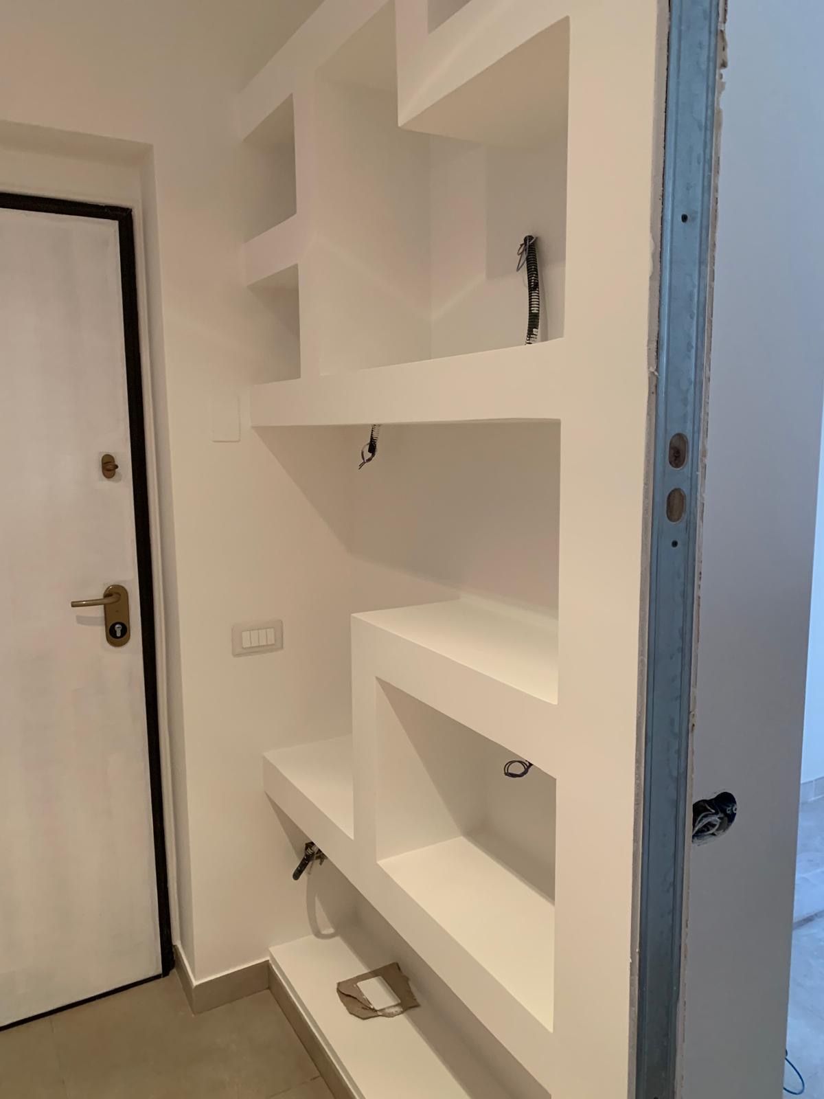 Anitra Giovanni realizza anche arredi artigianali su misura come librerie o mensole in cartongesso.
